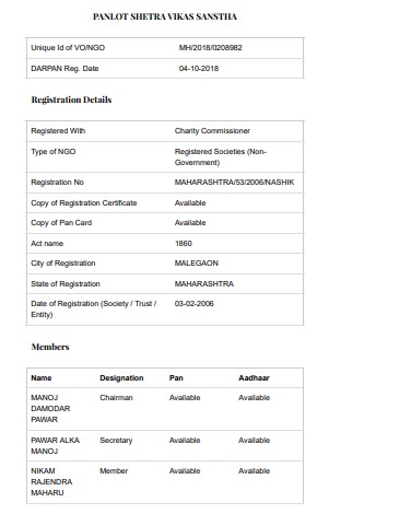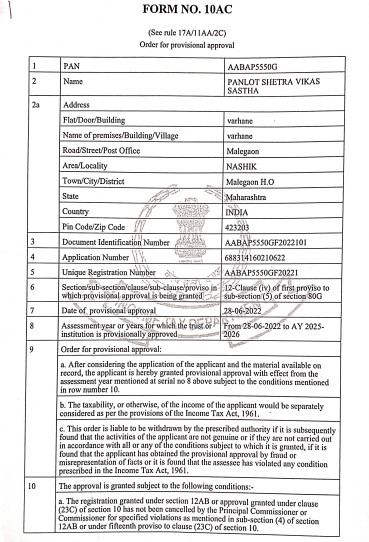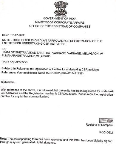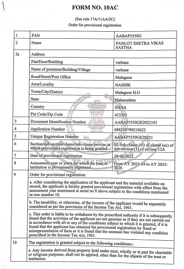 Documents Gallery Panlot Shetra Vikas Sanstha NGO Darpan PAN Card CSR Registration 12A Certificate 80G Certificate Annual Report 2020 Annual Report 2021 Annual Report 2022 ITR 19-20 ITR 20 - 21 ITR 21 - 22 ITR 22-23 ITR 23 - 24